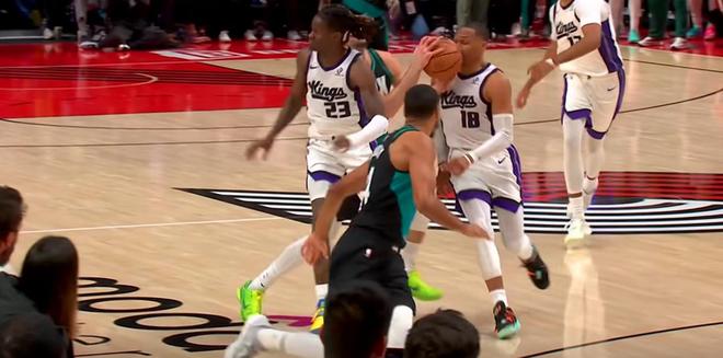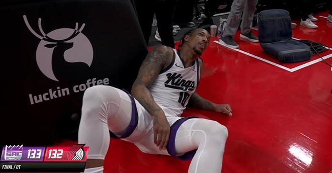 結果此時裁判響哨回看確認威少對阿夫迪亞犯規,無論是威少,還是國王主教練與替補席,乃至對手開拓者都一臉懵不敢相信這一切,經歷大喜到大悲的德羅贊久久不能平靜,直接坐在籃下看著大屏幕回放眼神空洞。