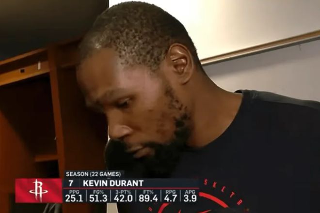 火箭隊在領先西部倒數第一鵜鶘25分的情況下被逆轉了,杜蘭特賽后批判全隊:從第三節開始全隊變得散漫,出手也變得隨意,就是為了出手而出手沒有任何的戰術、溝通可言,防守端太松懈,讓對手打得很輕松命中率很高,我們的退防非常糟糕。
