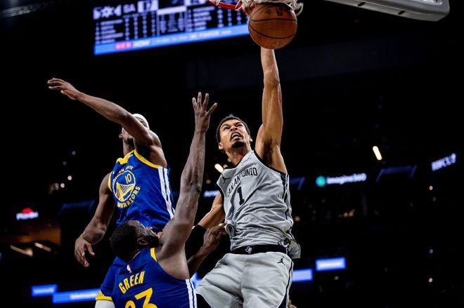 但馬刺為什么突然變強(qiáng)了?從球隊(duì)老大文班亞馬說起。文班亞馬本賽季場均24.7分11.9籃板3.6助攻3.3蓋帽,11月中旬對陣勇士時(shí)傷到小腿,休戰(zhàn)1個(gè)月,專門挑打雷霆的NBA杯賽半決賽復(fù)出,替補(bǔ)出戰(zhàn)21分鐘,11中6拿到22分9籃板2助攻2蓋帽,正負(fù)值+21,帶隊(duì)淘汰雷霆!NBA杯決賽輸給尼克斯不納入常規(guī)賽統(tǒng)計(jì),文班亞馬還是打替補(bǔ),25分鐘拿到18分6籃板;之后背靠背打奇才和老鷹,馬刺分別贏了對手25分和28分,文班亞馬依舊替補(bǔ),一場17分鐘15分8籃板4助攻4蓋帽;一場26分12籃板3助攻,21分鐘打出+29的正負(fù)值。
