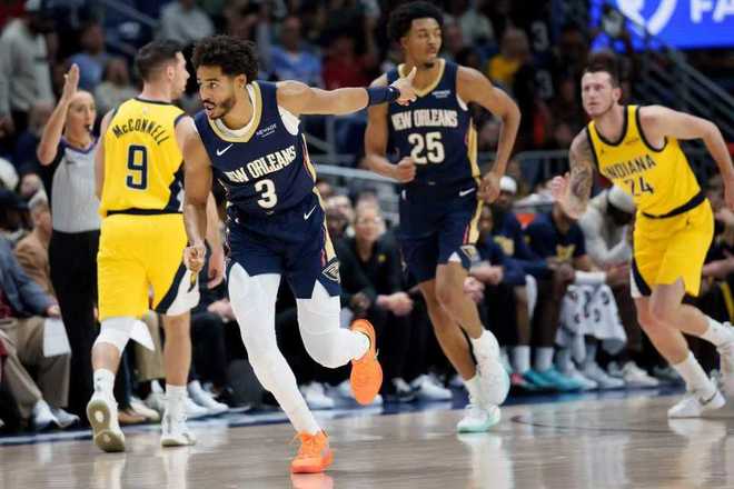 鵜鶘過去3場連贏開拓者、公牛與火箭收獲3連勝,步行者過去3場連輸76人、奇才與尼克斯遭遇3連敗。本場鵜鶘缺少穆雷,步行者缺少哈利伯頓、內史密斯與謝潑德。首節開局鵜鶘8-4領先,西亞卡姆三分命中,雙方之后纏斗至鵜鶘12-10領先。鵜鶘一波10-0攻勢擴大22-10領先優勢,鵜鶘內外開花繼續擴大32-15領先優勢,并在之后繼續擴大43-24領先19分優勢。步行者略微追回2分差距,首節結束鵜鶘44-27領先步行者17分優勢。首節鵜鶘28中17超過6成準星,墨菲10分,步行者27中10,西亞卡姆10分。