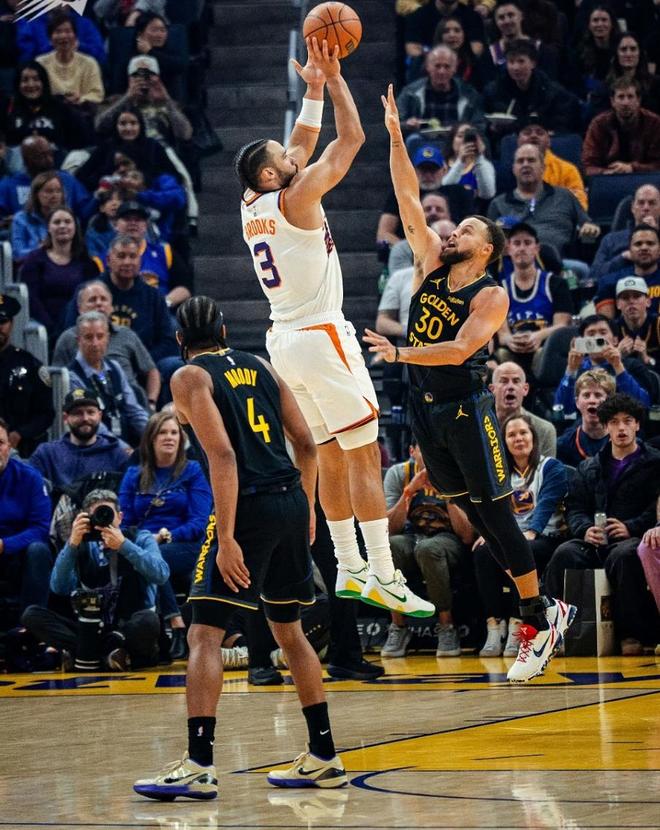 斯潘塞突破上籃沒有理查德補籃有了,鄧恩傳球失誤了,TJD籃下再補一球,奧尼爾進攻掩護犯規,梅爾頓突破也失誤,布克中距離美如畫58-48,上半場還有5分鐘不到的時間,看看能否打出有效的防守轉換,如果一直這樣的局面,這場比賽又很難了!理查德、波杰姆斯基兩名替補球員發揮出色,連續三分命中,梅爾頓也在三分線外造成犯規,第三罰不中理查德壓哨補籃,一波16-9勇士將比分追到64-67只落后太陽3分,下半場還有得打!