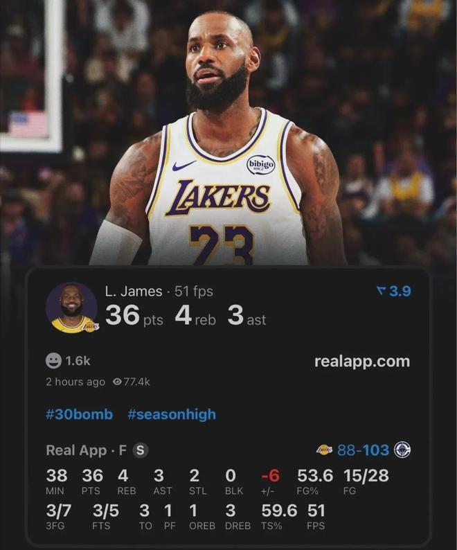 最近五場比賽,詹姆斯場均27.6分7.2板6.2助1.2斷1.2帽,投籃命中率53.8%,本賽季至今場均20.2分5.6板7.1助,很難想象這是一位即將41歲老漢打出來的數據。
